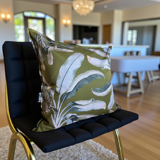 Exotic Banana Palm & Bird Cushion Cover - Moss Green