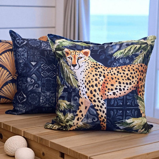 Jungle Coast Cheetah Botanicals Cushion Cover - Navy Blue