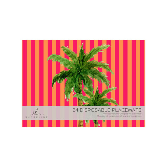 Poolside Bliss Cabana Stripe Palm Paper Disposable Placemat - Orange