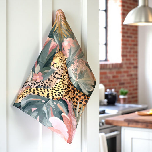 Summer Haze Cheetah Jungle Tea Towel - Muted Pastels