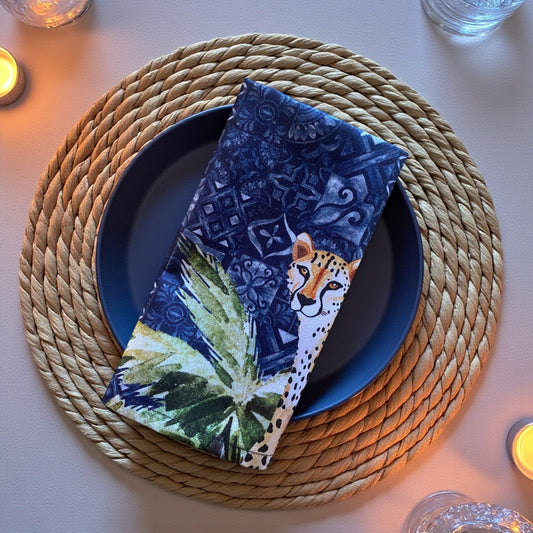 Set 2 Jungle Coast Cheetah Palm Napkin - Navy Blue