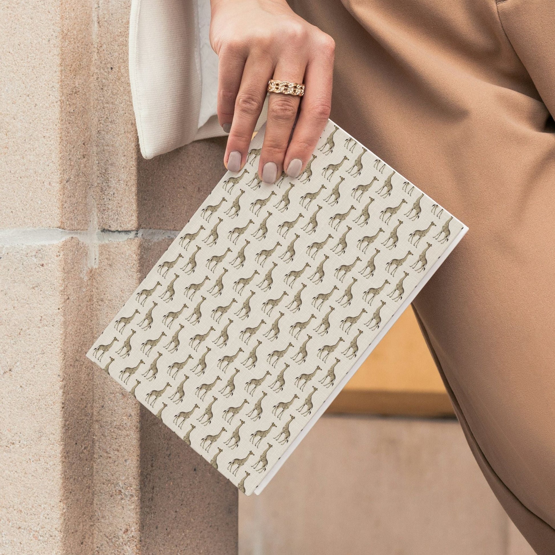 A soft natural background and subtle giraffe design make this notebook perfect for everyday writing and journaling.